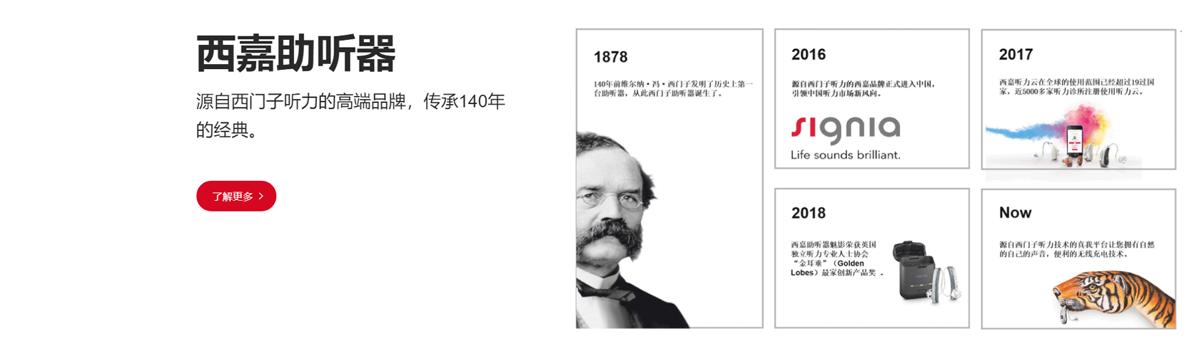 金華市康全醫(yī)療器械有限公司專業(yè)經(jīng)營西嘉助聽器,西嘉助聽器源自西門子聽力,傳承140多年的經(jīng)驗技術(shù),在聽力研究、助聽器研發(fā)和生產(chǎn)等領域享有盛譽。其足跡遍布全球100多個國家和地區(qū),不斷創(chuàng)新,竭盡推動聽力行業(yè)發(fā)展。西嘉助聽器繼承了西門子聽力逾百年的科技精髓,擁有強大的研發(fā)創(chuàng)新能力。我們將利用這些先進的產(chǎn)品技術(shù)為金華地區(qū)聽力損失患者提供專屬個人的聽力解決方案,為您解決聽力上的煩惱,重回有聲的精彩聽世界。